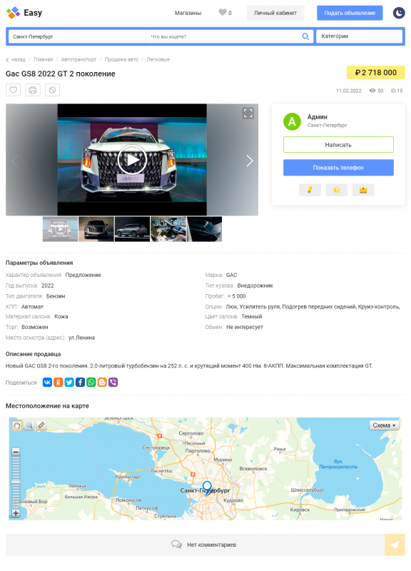 - Переключение отображения списка объявлений списком/блоками.